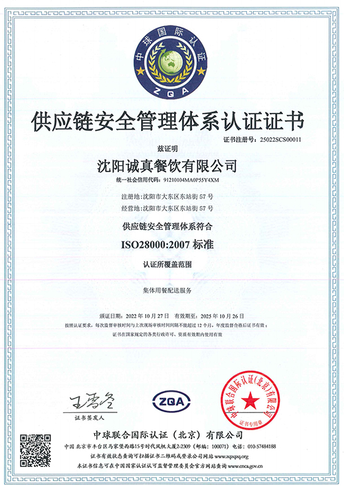 供應鏈安全管理體系認證證書